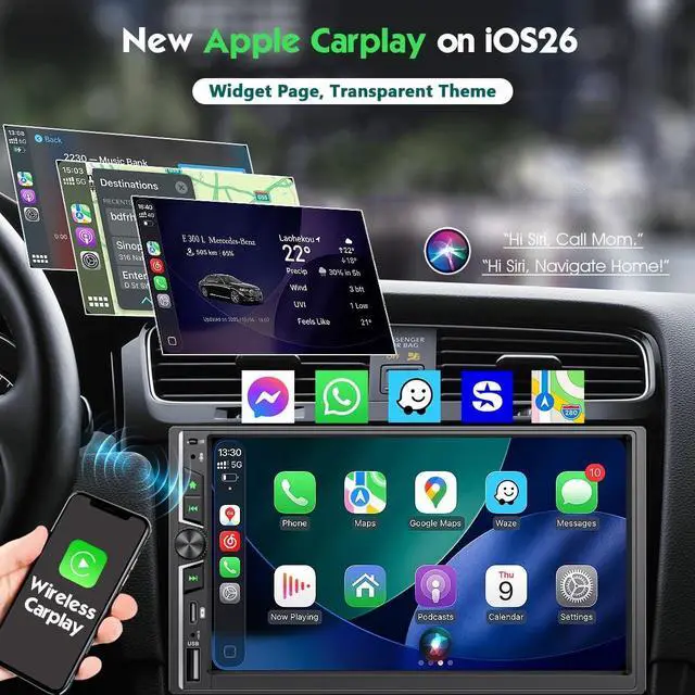 Upgraded Wireless Apple CarPlay & Android Auto Integration: Automatically activates upon vehicle ignition for instant smartphone connectivity. Proprietary optimization ensures seamless performance of navigation apps (Google Maps, Waze... ), music streaming (Apple Music, Spotify... ), and communication tools. Voice command support ("Hey Siri" or "OK Google") enables hands-free calls, messaging, and turn-by-turn navigation.