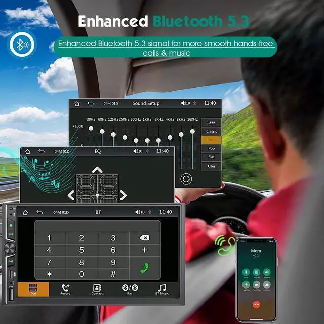Microphone System: Dual independent Bluetooth modules ensure 2x faster pairing and 30% reduced interference. Built-in HD noise-canceling microphone + external MIC port delivers studio-grade call clarity (98% speech recognition accuracy) even at highway speeds. ^^ Custom 1024x600