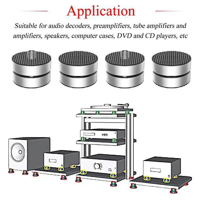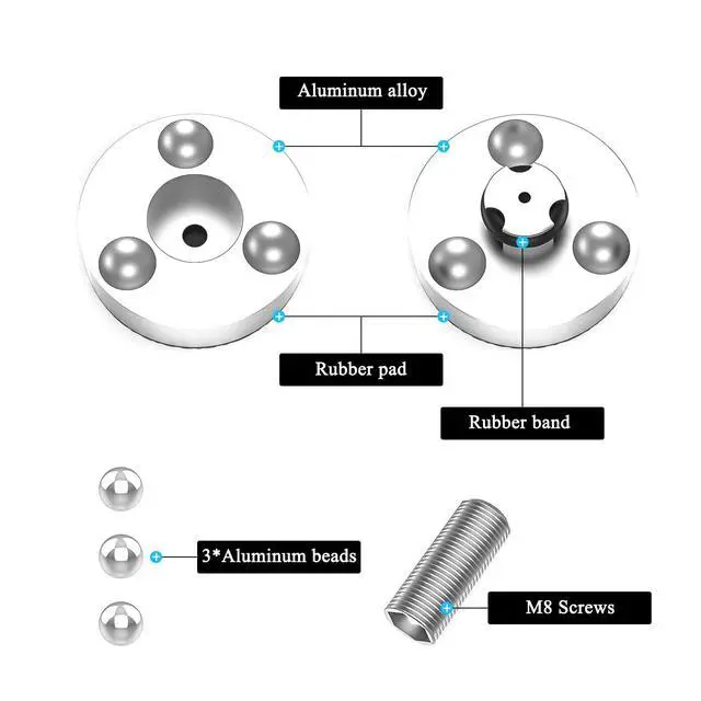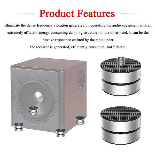 [Enhanced Sound Quality] Effectively improves sonic dynamics, resulting in a wider, deeper soundstage and more vividly reproduced details. ^^ [Sandwich Vibration Damping Structure] Features a sandwich-type structure where the top layer bears the equipment's weight, and the bottom layer channels vibrations downward through stainless steel balls for multi-directional dispersion. ^^ [Steel Ball Guide Cone Technology] Vibrations are radially diffused through the stainless steel balls to the lower layer, more effectively transmitting vibrations and reducing self-interference compared to conventional cones. ^^ [Precision Engineering & High Load Capacity] Manufactured with high-quality CNC machining and an anodized surface finish.
