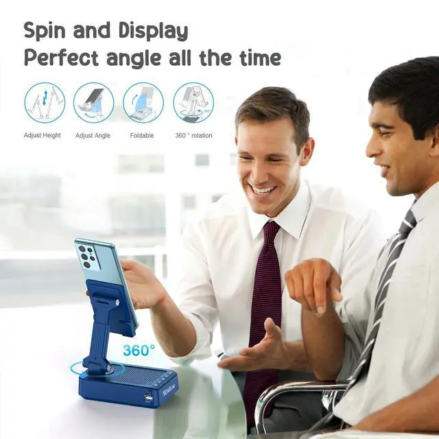 TechGlow Gifts for Men Women Foldable Cellphone Stand with Bluetooth Speaker and Charging Function 360 Rotatable Phone Stand Birthday Gift Idea for Mom Dad Cool Tech Gifts-Blue