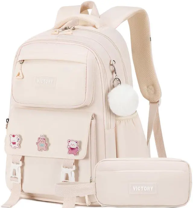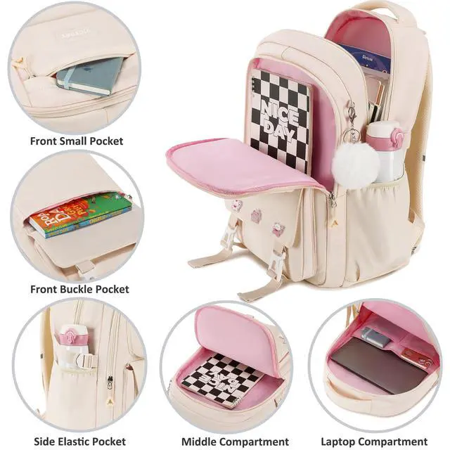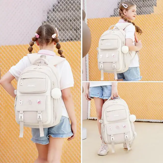 Large Size & Gift: The size of back pack is 12.2" x 5.5" x 17.8" (L*W*H), Weight: 1.65 LB. The laptop bag with padded compartment sleeve fit for 13.3, 15, 16 inch computer. This kawaii book bag also along with fluffy ball key pendant and personality badge as gift makes the schoolbag more fashionable and unique ^^ Waterproof