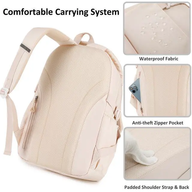 Multi-compartments & Large Capacity: The big water resistant woman traveling rucksack has 5 separate compartments and two side elastic pockets meet daily storage. The front two compartments can hold charge device and other small items, convenient for your daily organization. The main compartment of includes laptop padded sleeve and inner zipper pockets. The middle compartment also can provide roomy space for necessities. The back zipper pocket to prevent your important items from theft ^^ For Any Ages & Occasion The waterproof backpacking purse is stylish enough for casual and student use, while the design provides the multi functionality. Backpack perfect for young teens, girls, ladies. The basic multipurpose daypacks for most of your needs, easy to match your cloths, suitable for short trip, travel, work, shopping, university, school, etc.