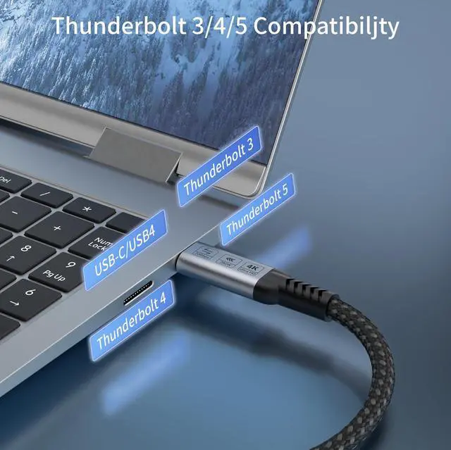 stunning high-resolution output: 8K@30Hz, 5K@60Hz, 4K@144Hz, and 1080p@240Hz. This USB-C to USB-C cable is perfect for connecting USB-C laptops to USB-C monitors, including popular models like LG 4K series, HP EliteDisplay, Dell U2520D/S2719DC/U2421HE/P2419HC, and HP E273d/E27d G4. ^^ 240W Ultra-Fast & Intelligent ChargingBoasting 240W (48V/5A) ultra-fast charging, this USB-C to USB-C cable works seamlessly with 140W/100W/65W/30W USB-C chargers. As a reliable USB-C cable data solution, it's equipped with an exclusive E-Marker smart chip, which intelligently matches the required current to protect your devices from overcharging or current-related damage ^^ Extreme Durability & Stable PerformanceThis USB-C cable features a rugged braided outer jacket, aluminum alloy shell, and nickel-plated plugsensuring stable signal transmission and long-term durability. As a premium USB-C to USB-C data transfer cable, it