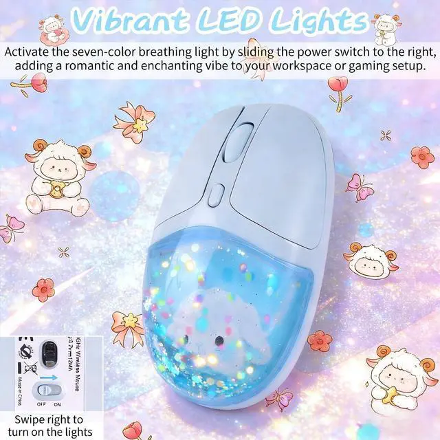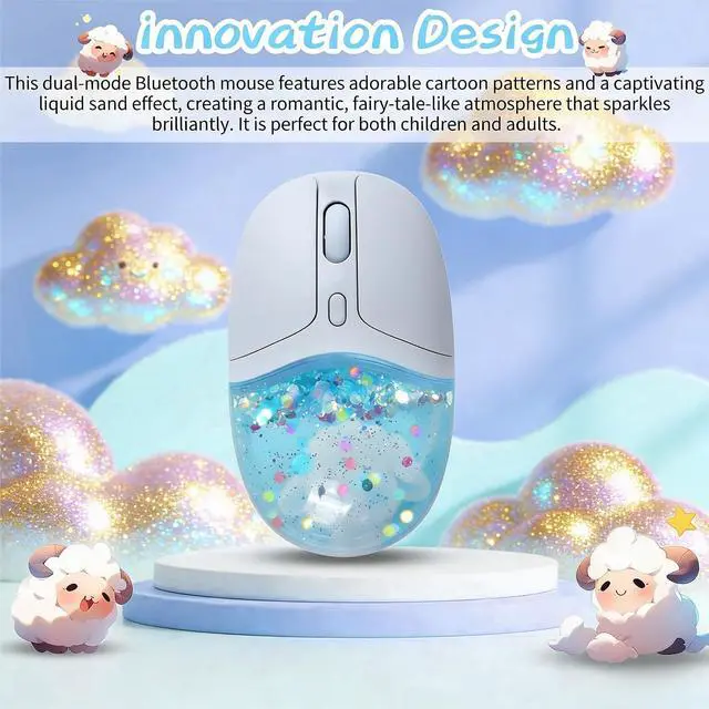 Design**: This **dual-mode Bluetooth water mouse** features adorable cartoon patterns and a mesmerizing liquid sand effect that creates a whimsical atmosphere, perfect for kids and playful adults.