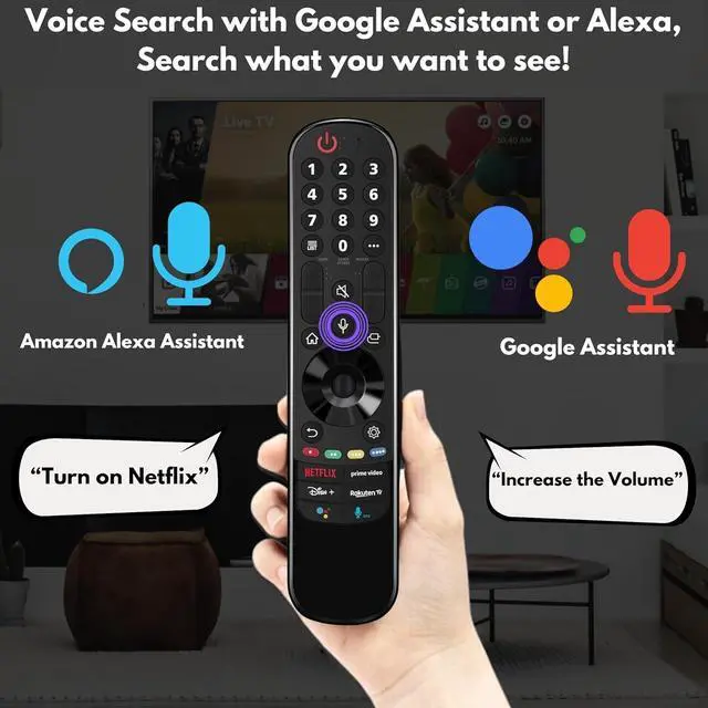 Control & Pointer Function: Experience unparalleled control with the ZeniClick Universal LG Remote Replacement, featuring advanced voice recognition and a seamless pointer wheel function. Effortlessly command your LG Smart TV with voice prompts for channel changes, content searches, and settings adjustments, all without lifting a finger. The intuitive pointer wheel function enhances navigation through menus and apps, providing a mouse-like control for smooth scrolling and precise on-screen selections. Elevate your home entertainment experience with ZeniClickCompatibility is key, and our remote is designed to work seamlessly with most TV Models. Effortlessly navigate your favorite streaming services like Netflix and Prime Video with dedicated hot keys, ensuring quick access to your preferred content. Compatibility is key, and our remote is designed to work seamlessly with 2021, 2022 & 2023 LG Smart TVs. Specifically tailored for LG TV models including OLED TV Z2, G2, C2, B2, A2 Series QNED99, 90, 85, 80 Series NANO80, 75 Series UQ90, UQ80, UQ75, UQ80 Series. Works for LG LED 4K UHD Smart TV & OLED TV 4K Smart TV G2 B2 C2 Series.