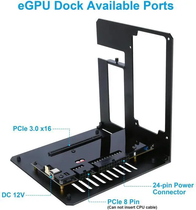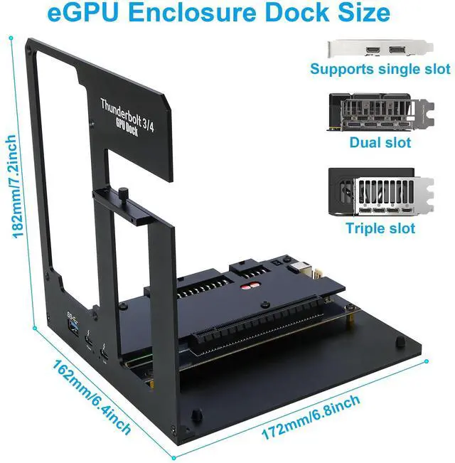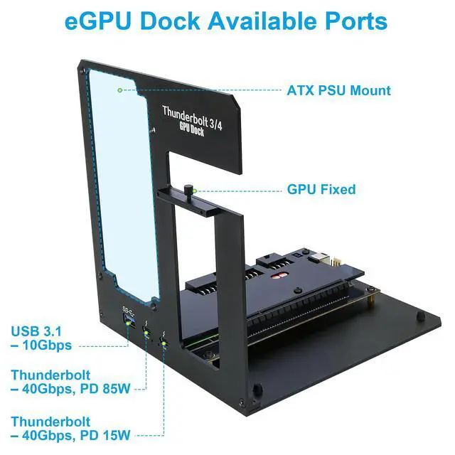 It supports dual 4K displays or a single 8K display for productivity, creative work, and immersive entertainment. ^^ Important NotesThis external graphics card dock does not include a graphics card or ATX power supply. Please connect or disconnect hardware only when the system is powered off, as hot swapping is not supported. ATX power supplies onlychoose the correct wattage for your external graphics card and install proper drivers for stable operation. The Thunderbolt port must be used with devices supporting Thunderbolt 3/4 or USB4 bandwidth. Customer support is available if assistance is needed.