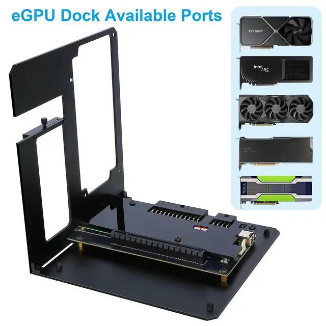 Powerful GPU ExpansionUpgrade your Mini PC or laptop with desktop-level graphics performance using an external gpu. Built with an Intel JHL7440 solution, this egpu thunderbolt 3/4 system converts the Thunderbolt interface into a PCIe x16 slot for high-performance graphics expansion. Whether for demanding 3D rendering, high-end gaming, or AI workloads, this external gpu dock unlocks your devices full potential and delivers a smooth, efficient experience. ^^ Wide CompatibilityThis egpu dock supports AMD, Intel, and NVIDIA gaming and professional graphics cards without extra adapters. It also works with other PCIe devices such as storage expansion cards and compute accelerators.