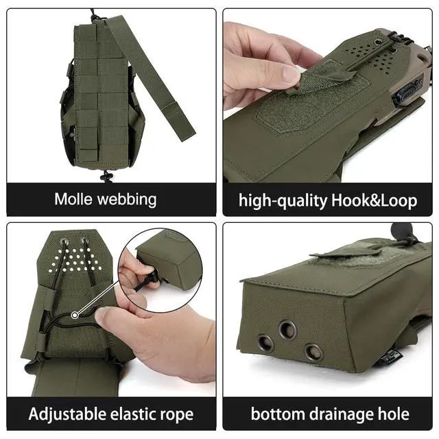 Outdoor Tactical Games: The TOPTACPRO Tactical Universal Radio Holster is specially designed for outdoor activities like milsim, airsoft, paintball, and CQB games. With a drainage hole at the bottom, it effectively expels water and debris, ensuring your equipment remains functional in harsh environments.