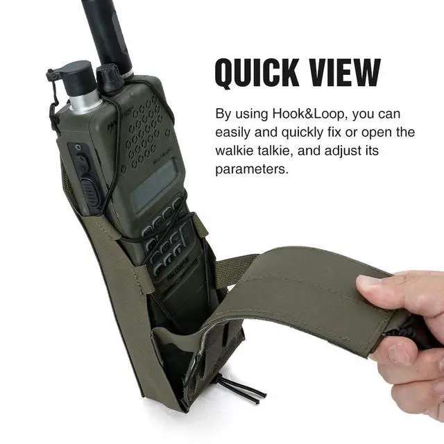 Versatile Attachment Options: This holder case provides two secure fixing methods: utilize the elastic cord with Velcro on the front for quick access or thread your walkie talkie through the internal cross elastic cords with a bottom pig-nose buckle for enhanced stability during intense tactical games. ^^ 3.