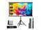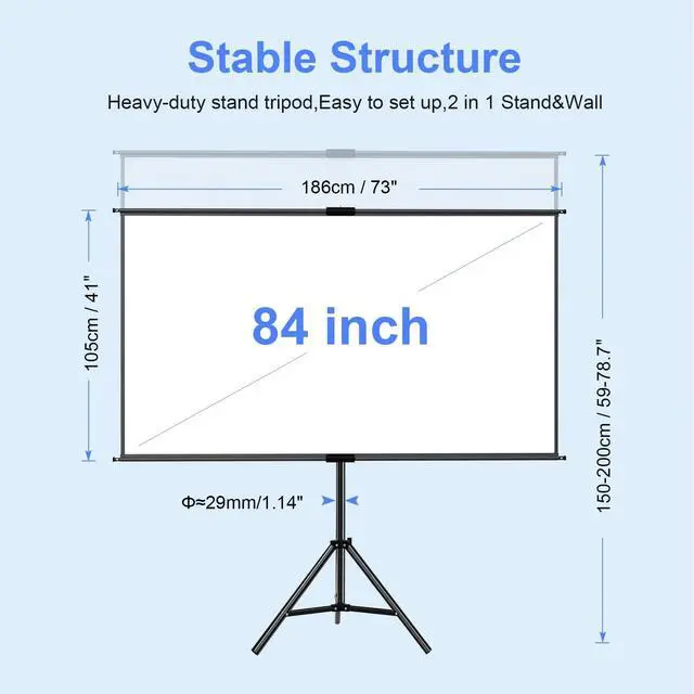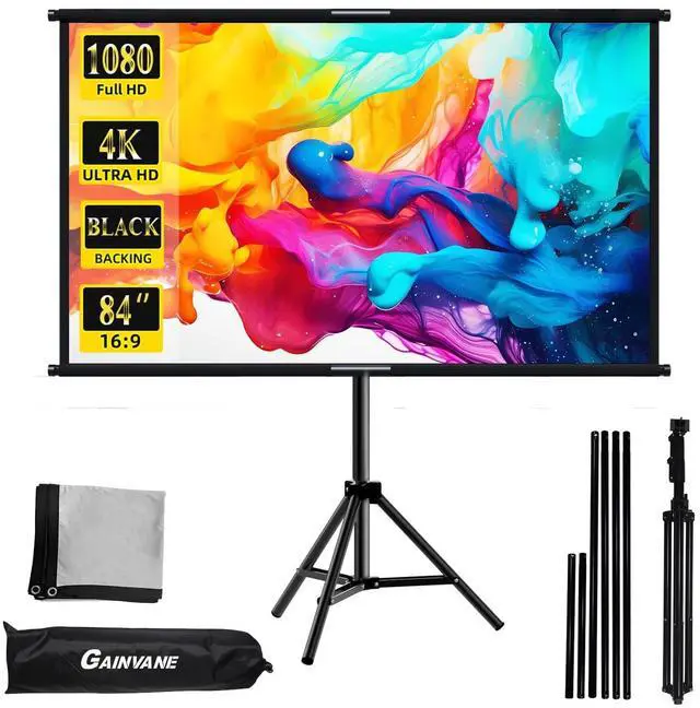 Projector screen and stand: Single tripod screen is light weight and portable, the tripod stands were made of high quality metal which is very strong and sturdy. a sand bag is included in package for you to add weight when use outdoor.
