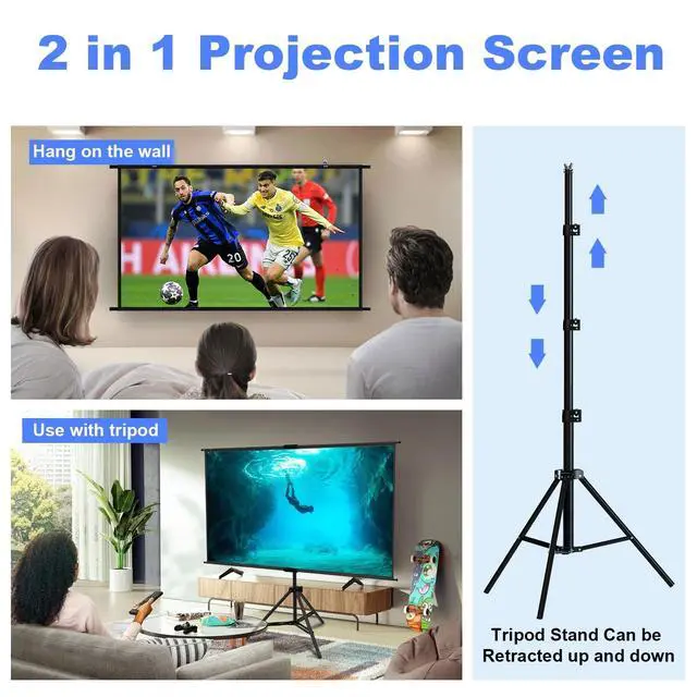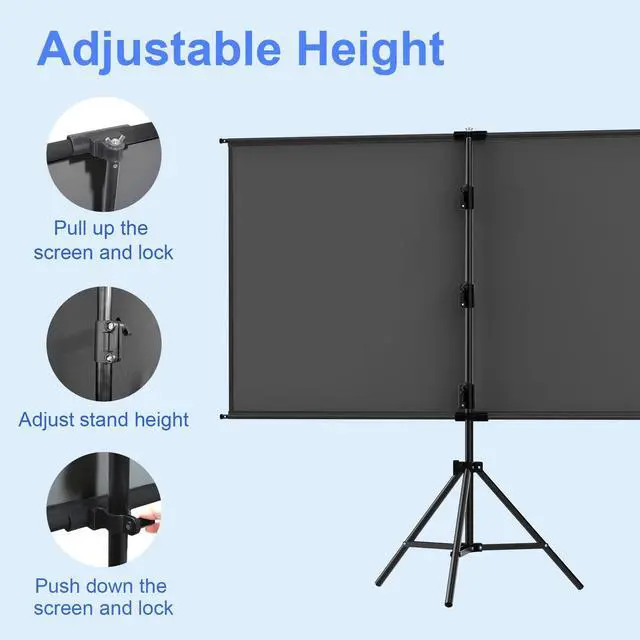 Easy to set up: This screen only takes 5 minutes to set up. It is also easily adjustable in height; 160 wide viewing angle support many people to watch movie or live sports games at the same time without feeling crowded. ^^