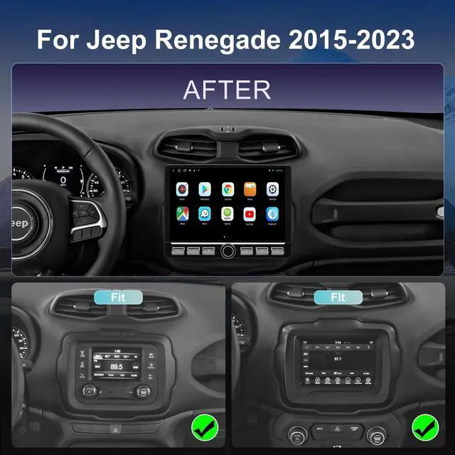 Perfect Fit for Your Subaru Outback Legacy Custom Design for Jeep Renegade 2015 2016 2017 2018 2019 2020 2021 2022 2023. Package come with everything you need to install. No modifications or wiring hacks neededjust plug in and enjoy a factory-fresh upgrade. Clear instruction and user manual support you install the stereo all by yourself. ^^ Wireless Smartphone IntegrationEffortlessly connect your smart Phone or Android device with wireless CarPlay and Android Auto. Access your favorite navigation apps, music playlists, and messaging services directly on the in-dash screenno cables required. Enjoy a clutter-free setup and a safer, more intuitive driving experience.
