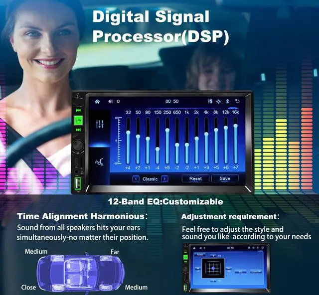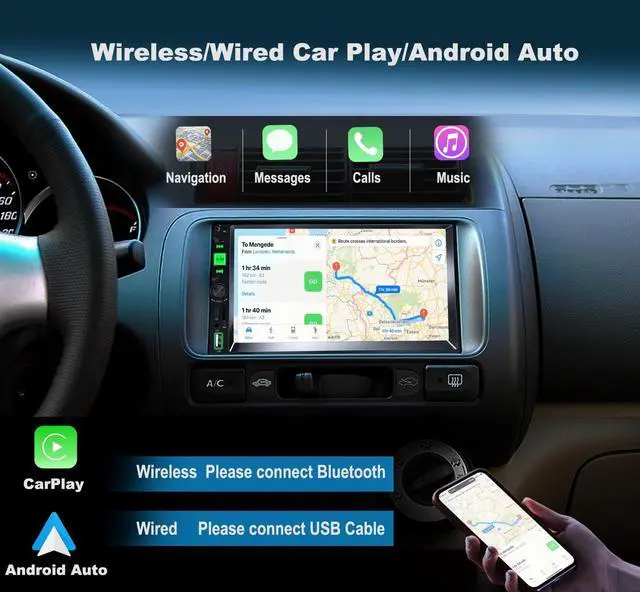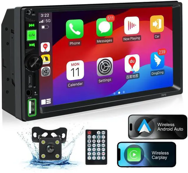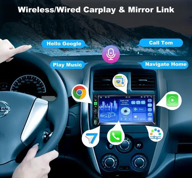 Wireless Carplay&Android Auto&Voice ControlThe double DIN car stereo with CarPlay & Android Auto. With this feature, you can use Siri/ Google Assistant to achieve voice control on your phone, so that you can play your music, talk or open the map software to GPS navigate in your car.