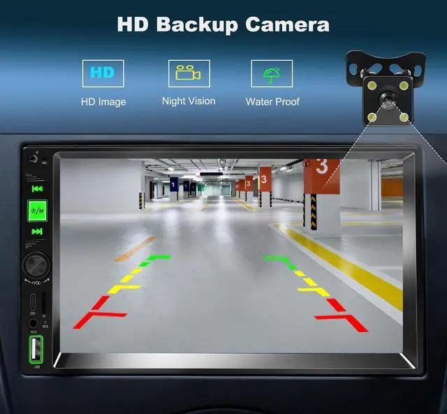 Note: The car play screen with backup camera is not the GPS unit. 2 din car stereo receiver obtains the GPS navigation function by connecting to the cellphone ^^ Built-in High Sound Quality Bluetooth&DSPThe 7 inch carplay screen for car with configure the upgrade model independently bluetooth and support audio high and low audio sound adjustment, built-in DSP support multi-segment sound adjustment DSP. Bluetooth with DSP helps to make hands-free calls clearer and more stable, with better output music, sound quality and sound effects. ^^ IPS Touchscreen & Mirror Link7 inch universal size double din car radio receivers base resolution is 800x600, up to 1024x1200 support, With car stereo double din mirror link, you can sync your phone screen with the big screen of your car radio for high-quality pictures and videos, loud and clear music, and online navigation. ^^ Safety Driving SWC Control FeaturesThe double DIN radio apple carplay is equipped with advanced Steering Wheel Control (SWC) function, which allows you to easily control various functions of the vehicle while driving. Through SWC, you can conveniently adjust the volume, switch tracks, and even activate voice commands, all without taking your hands off the steering wheel, thus significantly reducing the potential safety hazards brought about by distracted operation! ^^ Dimensions and Installation of 7 Inch Double Din Car Stereostandard installation size 180 (L) *102 (W) *62 (H) mm.