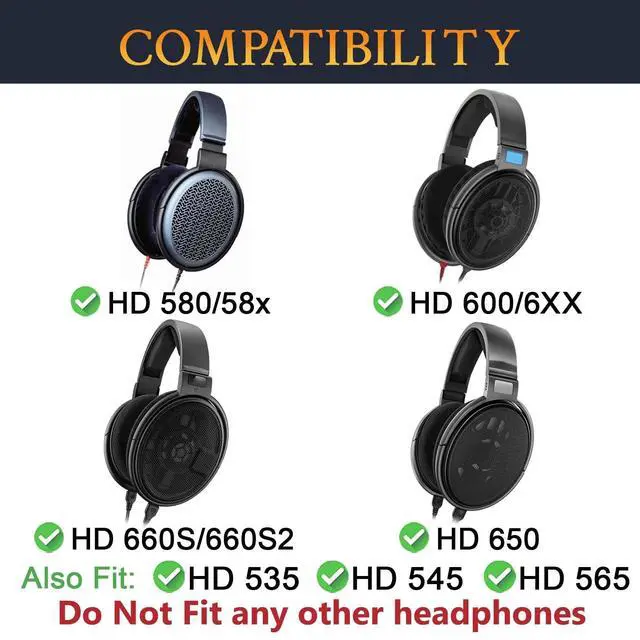 Compatibility: Fit perfectly on HD650, HD660S, HD660S2, HD600, HD6XX, HD58X, HD580, HD565, HD545, HD535 Headphones. Please confirm your headset's model before purchase.