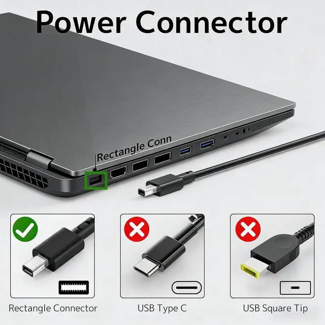 Connector Type: Proprietary (3-Pin Rectangle Conn) (incompatible with round tip 6.0 * 3.7 mm) 2.