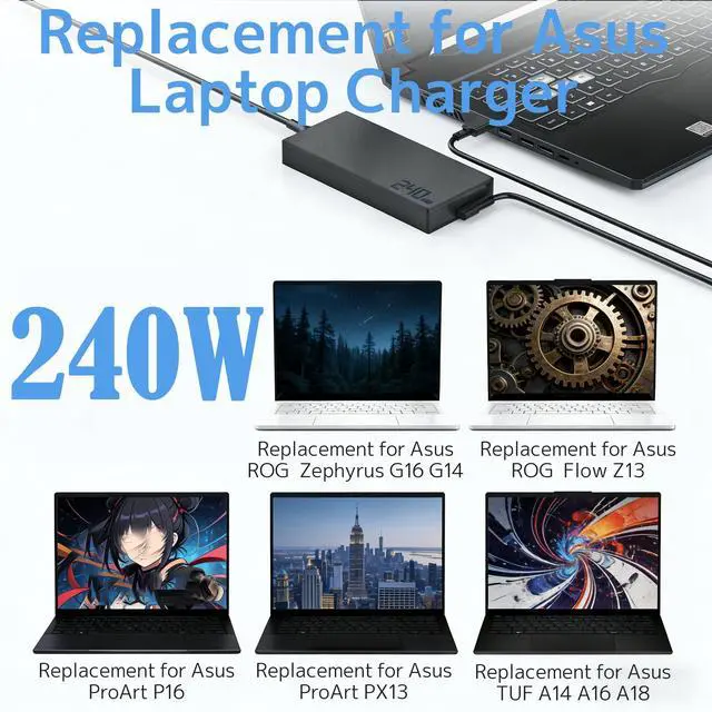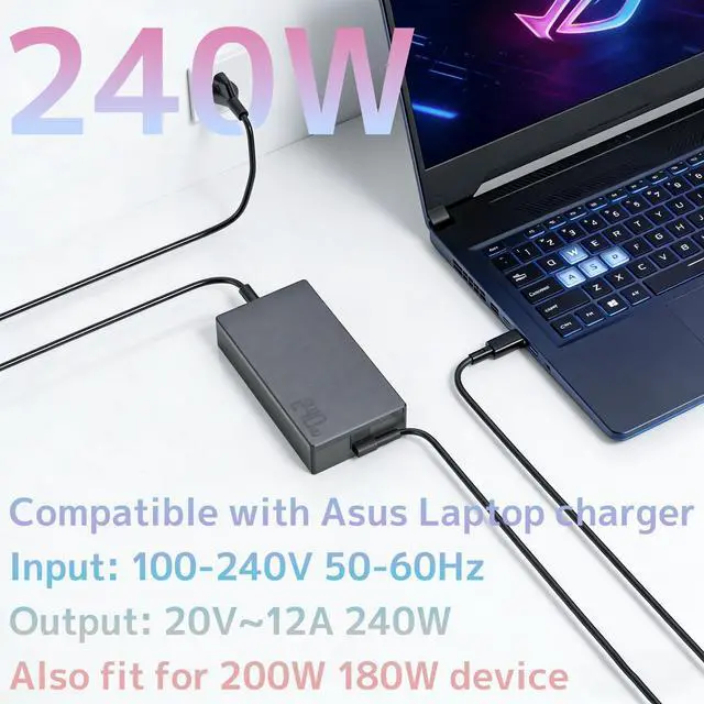 Compatibility: Compatible with ASUS ROG Zephyrus G14 (2025 2024) GA403 GA403WR GA403UP GA403WW GA403UV GA403UU GA403UI GA403WP GA403WM GA403UM; ROG Zephyrus G16 (2025 2024) GU605 GU605CR GU605CW GU605CX GU605CM GU605CP GU605MZ GU605MY GU605MI GU605MU GU605MVROG; Zephyrus G16 (GA605) GA605KM GA605KP GA605WV GA605WI; Replacement for ASUS V16 (V3607). V3607VM V3607VU V3607VJ Laptop Computer Power Supply Adapter Cord Cable Charger 4.