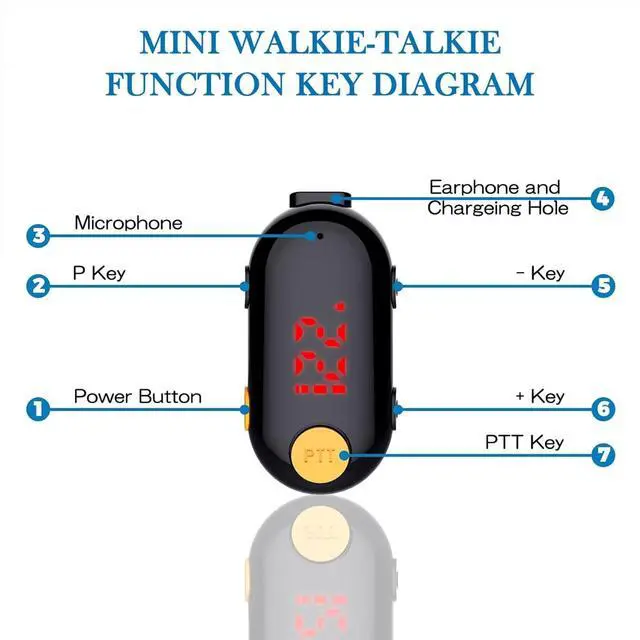 Ultra Mini Walkie Talkies: The size is only 2.08 x 0.84 x 0.59 inches, 0.6 oz ultra light weight is easy to carry. The earphones of this portable mini walkie talkies use an ergonomic G-shaped ear hook design. The soft material design fits close to the ear and is comfortable to wear for a long time. 360-degree rotating headset, fit either the left or right ear. The back of the small two-way radio body has a clip that can be easily fixed on the collar ^^