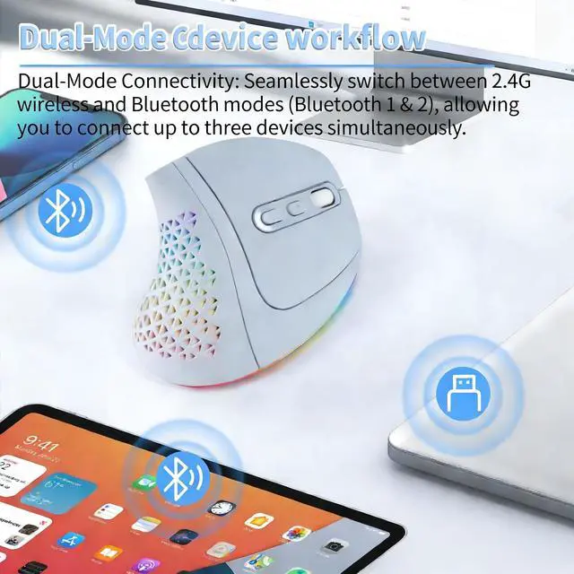 ^^ **Dual-Mode Connectivity**: Seamlessly switch between 2.4G wireless and Bluetooth modes (Bluetooth 1 & 2), allowing you to connect up to three devices simultaneously.