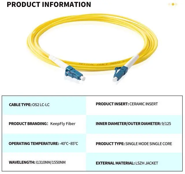 Long-Distance Transmission: The OS2 single-mode fibers in this cable are designed for long-distance transmission, reaching up to 200km without compromising signal integrity. With a maximum attenuation of only 0.4 dB/km, it is ideal for high-speed network cabling systems and can support Ethernet transmission speeds of 1G/10G ^^ High-quality OS2 LC to LC Single Mode Simplex Fiber Patch Cable: Made with the finest materials and craftsmanship, our fiber optic cable ensures seamless data transmission and reliable performance. With low insertion loss ( <0.3dB) and high return loss (> 50dB), it guarantees exceptional signal quality for your network ^^ Wide