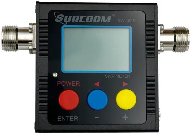 VSWR. Forward and reflected power direct digital readout, without any calibration ^^ Maximum measurable power range up to 120W. ^^ Low insertion loss ( 0.3 decibels or less) structure allows it to be permanently connected. ^^ Build in frequency counter. Auto to measure DMR/frequency. ^^ All function display (frequency, power, SWR, FW, RW, battery level). With LCD backlight display. ^^ Digital DMR ready.