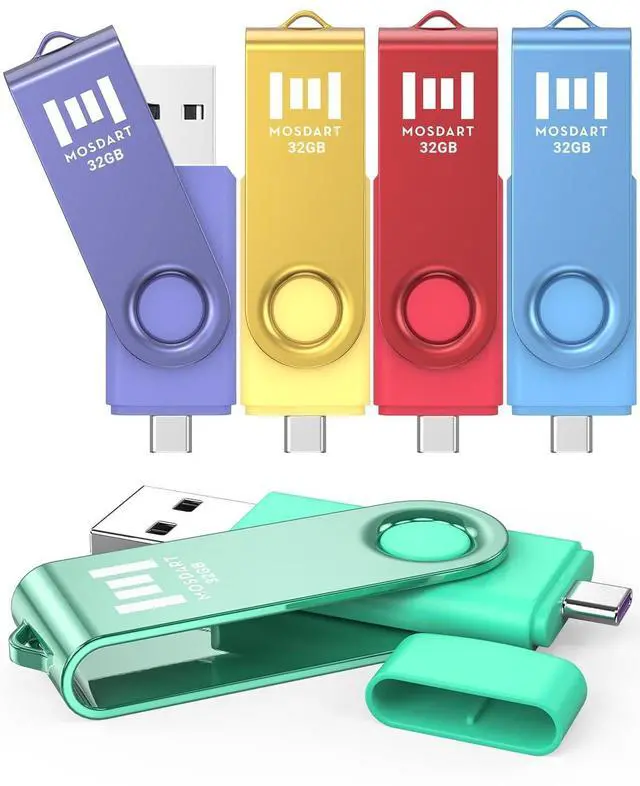 Bright color: Five Pack vibrant color USB 2.0 32GB dual USB A and USB C flash drives package. Unique colors help to avoid confusion from others USB flash drives. You can easily remember whats on the drive by five different colors.