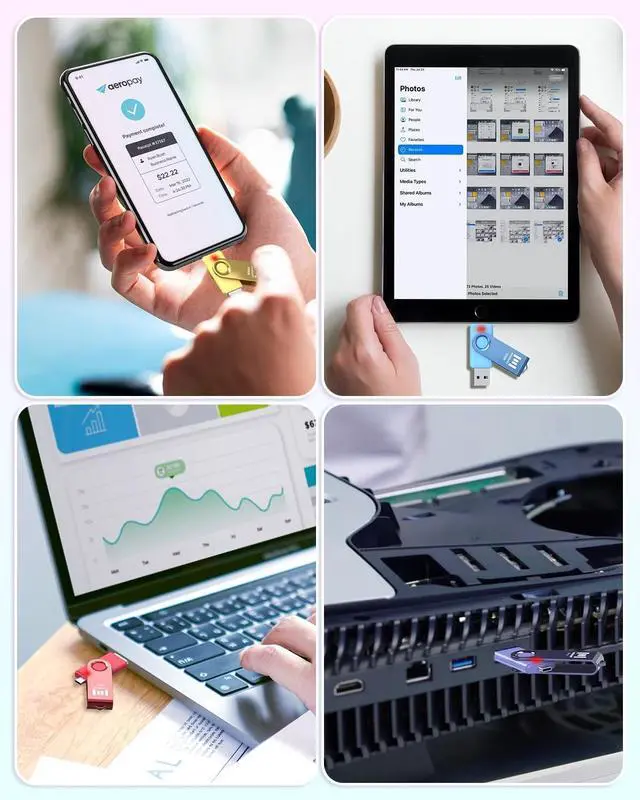 ^^ Wide compatibility: With USB A and USB C Ports, this 32GB Thumb drive allows you to use it on laptops, computers, tablets, android phones, iPhone15 series, car audio, printers, smart TV, embroidery machines, Xbox, PS4.