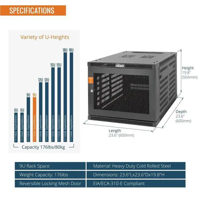Heavy-Duty Load Capacity: Engineered to support up to 176 lbs wall-mounted and 350 lbs floor-mounted, this commercial-grade 9u wall mount rack is ideal for servers, switches, patch panels, and other high-density IT equipment ^^
