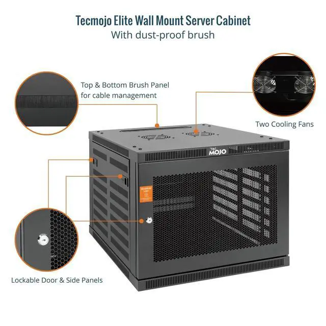Integrated Cooling & Security: Equipped with dual top-mounted cooling fans for active ventilation while lockable front and side panels provide enhanced security against unauthorized access ^^