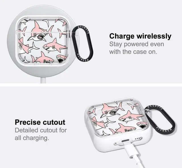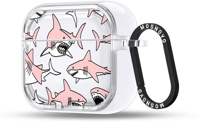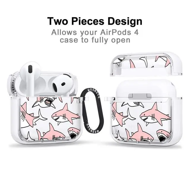 MOSNOVO Case for Airpods 4, Protective Clear Case with Shockproof Dual Layer Hard Luxe Metal Ring Designed for Airpods 4 Generation - Pink Sharks