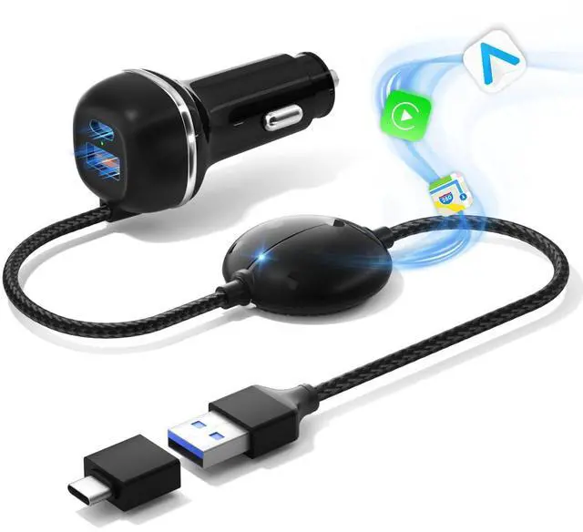 Transform your driving with our cutting-edge wireless carplay adapter and android auto wireless adaptera powerful 3 in 1 fast charging car charger that redefines convenience. With a single cable, you can charge your devices while seamlessly accessing music, navigation, and communication apps, creating a tidy and efficient in-car environment. Enjoy the freedom of wireless connectivity and say goodbye to cable clutter. Our car charger ensures stable voltage for reliable data transmission, so your audio and navigation remain uninterrupted, whether you face speed bumps, rough roads, or sudden stops.