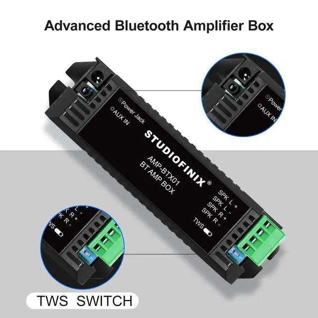 ^^ TWS ConnectionTWS Amplifiers-defining a new standard for wireless music. You can use one amplifier alone to connect to the speakers to play music. You can also use the tws function to connect two Bluetooth amplifiers to play music at the same time. Switch at will and enjoy your life! ^^ What's in the package 2 channel Bluetooth amplifier box * 1, 12V3A power adapter * 1, user manual * 1, screwdriver * 1, screws * 2