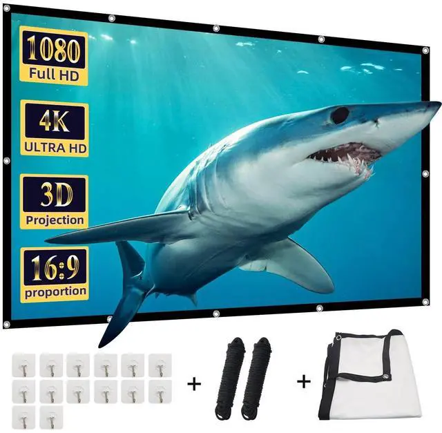 our hd projector screen also can be used to your family, friends, as enhance relationship by sharing viewing experiences or talking about the plot in the movie night. ^^ Professional After-sales Service Comes with 1 * projector screen, 2 * 2 meters ropes and 8 pcs hooks. ^^ Note Please contact to us if you have any problems about our video projector screen, then we will make every effort to resolve it for you.. And this video projector screen foldable only can be wash by hand, not by machine.