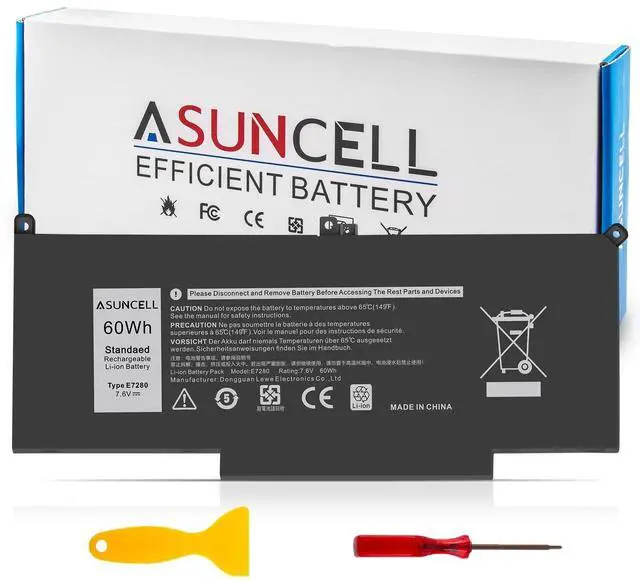 DellBattery type: Li-ion, Voltage: 7.6V, Capacity: 60Wh, Cells: 4-cell, Color: Black. ^^ Compatible P/M - F3YGT DM3WC 0DM3WC DM6WC 2X39G KG7VF 451-BBYE 453-BBCF ^^ Compatible Laptop ModeFit for Dell Latitude 12 7000 7280 7290 Series, Compatible With Dell Latitude 13 7000 7380 7390 Series, Compatible With Dell Latitude 14 7000 7480 7490 Series, Dell Latitude E7280 E7290 E7380 E7390 E7480 E7490 Series ^^ AdvantagesBrand New. Grade "A" cells TOP quality battery with reliable performance, low self-discharge to extend battery life. All ASUNCELL products are rigorously tested and certified by CE, FCC. ^^ Note All of our product have12 Months Warranty and 24 x 7 hours Email Support. Please check whether this battery is compatible with your computer before purchasing. Part numbers of compatible batteries and Computers are listed as following.
