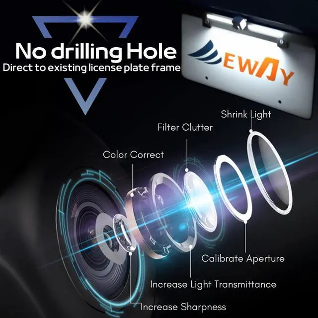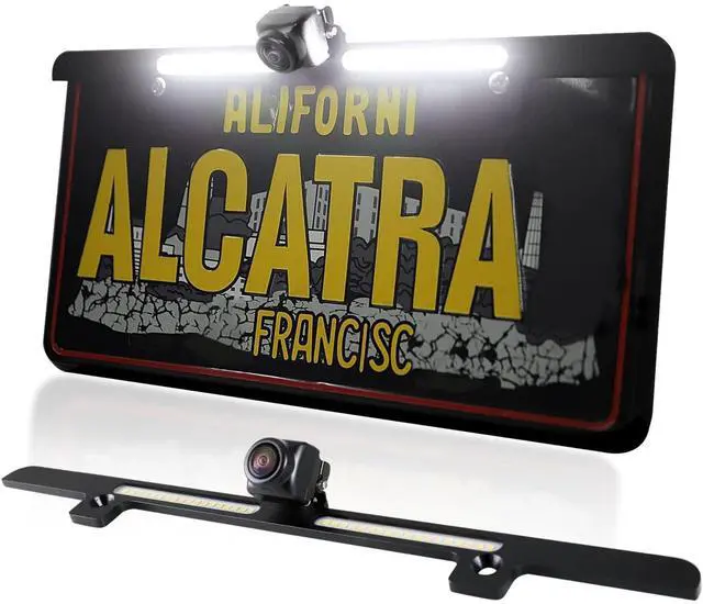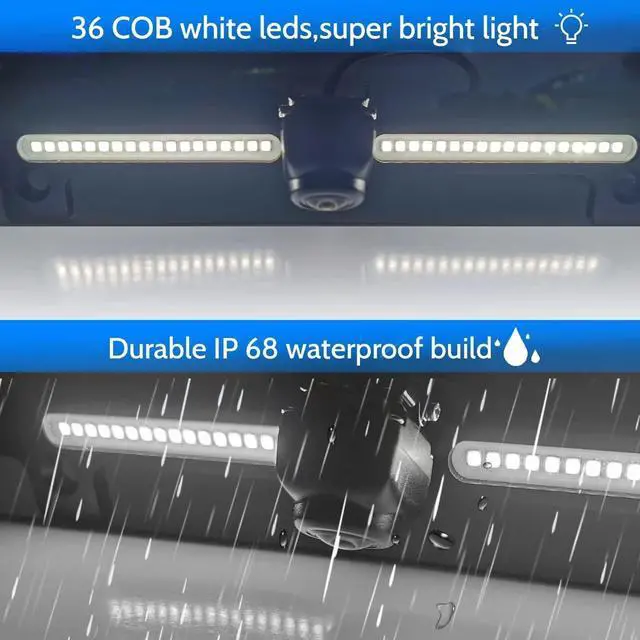 Widely Vehicle UsedLicense plate bracket reverse light backup camera with the added 26ft long extension wiring harness, rear view camera is applicable to variety of light-duty and heavy-duty vehicles: off road car, van, camper, caravan, motorhome, truck, trailer, 5th wheel, etc. Safety added provide yourself and others when reversing at night. ^^ Clear Night VisionRear license plate pure white backup light is combination of 36 white leds Lamp and camera with CMOS image sensor, 972 (H) x 504 (V) Resolution which will display a clear color image, give you clearer night-vision without picture distortion. ^^ Adjustable View AngleThis license backup camera bracket is designed to be able to adjust up and down which makes the rear view camera better assist reversing. It build in 170angle lens will provide a larger viewing angle and easily avoid blind spots. Parking line can be turn on/off. ^^ 36 Super Bright LEDThis slim defend indust plate 1800lm LED light bar, which runs on 12V systems and can also serve as a reverse light improving your ability to see well while backing up in the dark field. ^^ Easy InstallationUniversal flush mount, no drilling to install. Backup camera can be connected to any monitor with RCA video input. Only need to put the metal bracket to existing license plate frame holes, finally run wire to reverse wire and aftermarket display/radio.