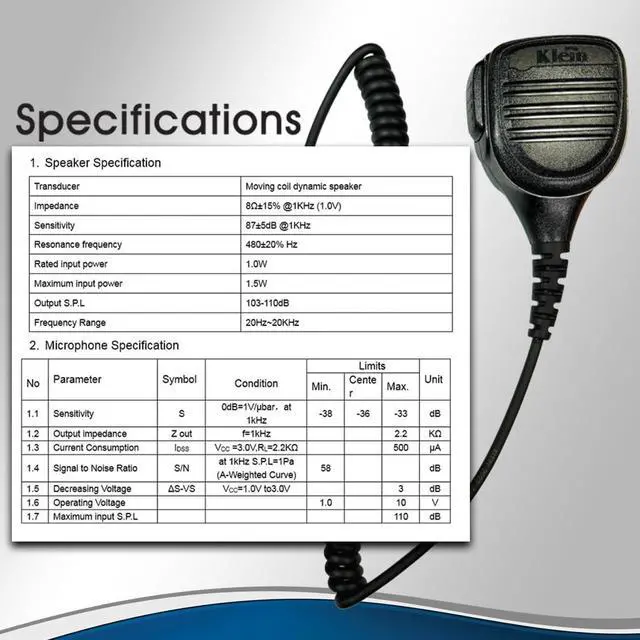 ^^ SPEAKER SPECIFICATION: Transducer- Moving coil dynamic speaker, Impedance- 815% @ 1KHz ( 1.0V ), Sensitivity- 875dB @ 1KHz, Resonance Frequency- 48020% Hz, Rate Input Power- 1.0W.