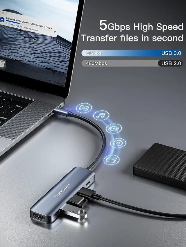 PD Charging: The USB C Docking station also works as a charging station to keep your laptop, iPad or steam deck on power, So you can work while charging. (The PD port without data transfer function and 8W is used to power the hub) ^^ Ultra-Super