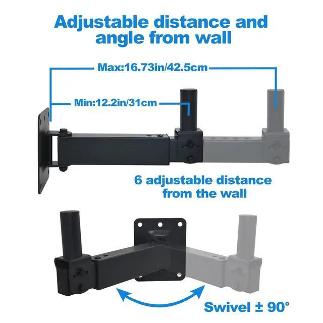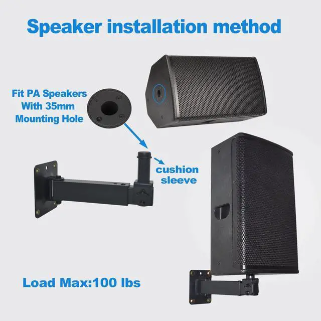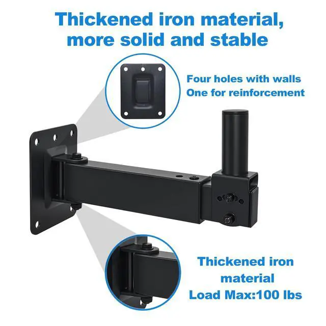 Convenient installationThe speaker mounts can be installed on the wall, which can be tilted up and down by 45, and the level can be adjusted 180, so that your speakers can get a perfect angle of sound ^^ Safe and reliableMade of solid steel, it can withstand additional loads of up to 100 pounds. ^^ Universal and compatibleThis wall speaker mount is almost compatible with most speakers on the market; ^^ Wide range of applicationssuitable for wall speaker mounting brackets in bars, home theaters, churches, conference rooms, classrooms and other places.