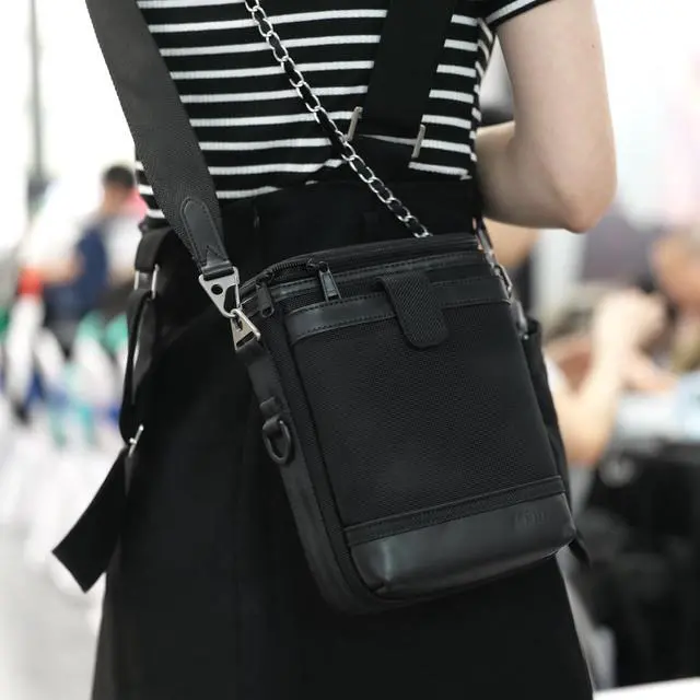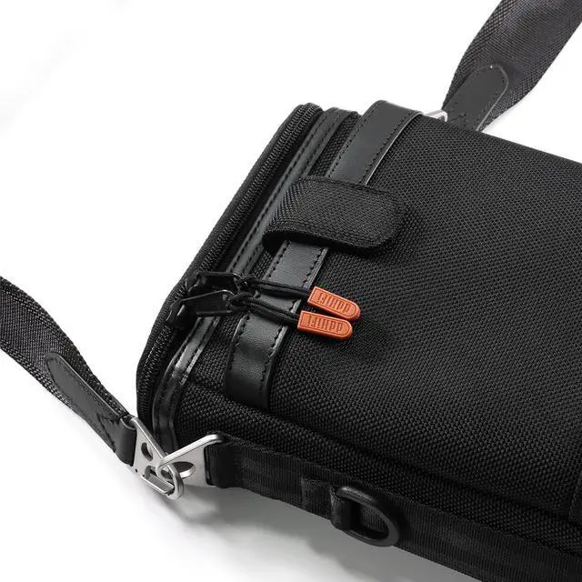 ^^ Premium Materials: The body of this sling bag is crafted from double-layered splash-resistant nylon fabric, while the top flap and base are made of genuine leather for both aesthetics and durability. The top flap features two high-quality YKK zipper pulls for smooth opening. The shoulder strap is equipped with two sets of SUS304 stainless steel eagle-hook buckles.