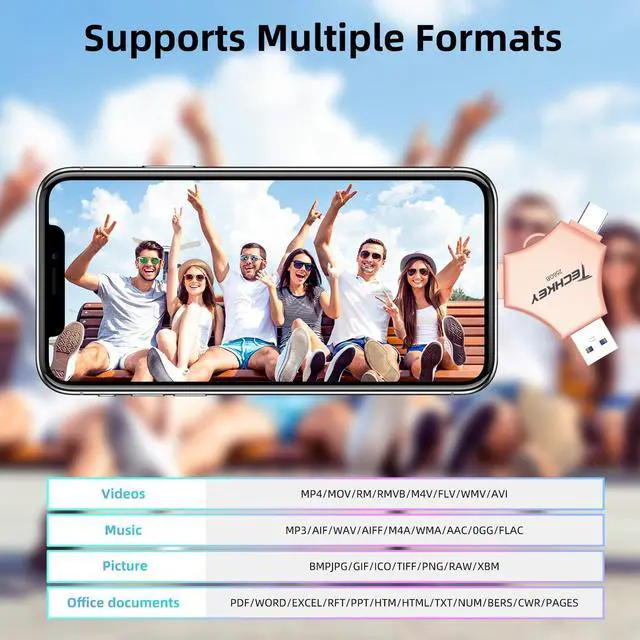 It is also lightweight and compact, easy to carry around and keep your data at your fingertips. Accompanied by a uniquely designed keychain, the product is more convenient for you to carry. ^^ One Click Backup, One Click SharingYou can easily backup photos, videos, and phonebook to your phone with just one click via the APP, freeing up space on your mobile device without using a data cable or iCloud. You can also share photos/videos/files from the flash drive directly to social media (Facebook, etc. ) for easy sharing with family and friends.