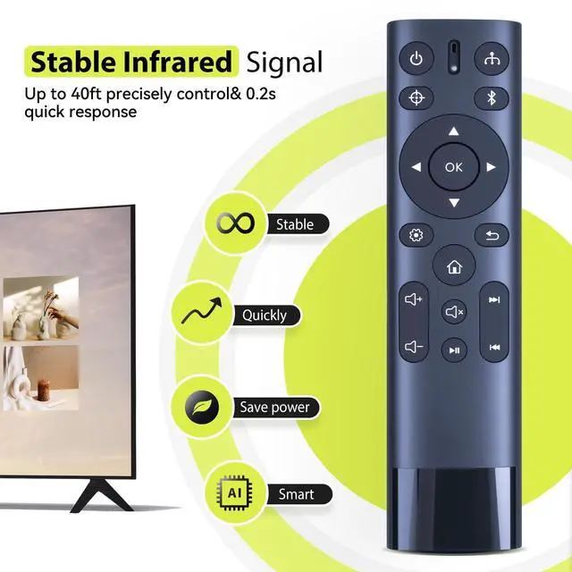Remote CompatibilityCompatible with model VS18245 A-00010467 CDE3200-L M1+G2 X1 3.100 X2000B X2000L X1000 M2e X2 M1X M2 M1 Pro M1 Gen 2 X11 TX10HD-4K ^^ Ergonomic DesignCompact and lightweight, with a comfortable hand feel. The smooth edges and anti-slip surface provide a safe grip and reduce the chance of accidental drops during use. ^^ Easy To UseNo setup and pair make it start to work directly after two AAA batteries inserted, Batteries are not included. ^^ Precise ControlThe optimal control distance between the device and the remote control is five meters, and the maximum distance is ten meters.