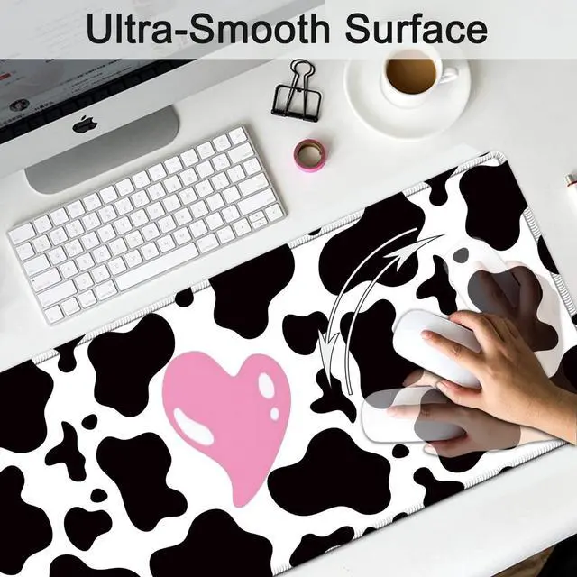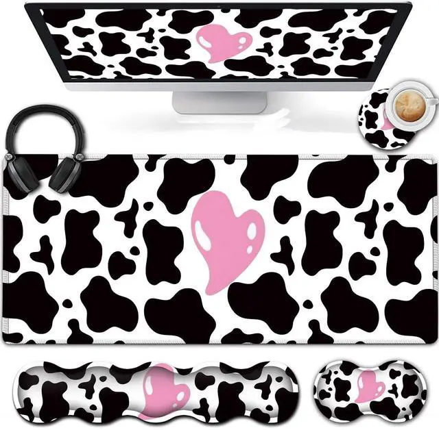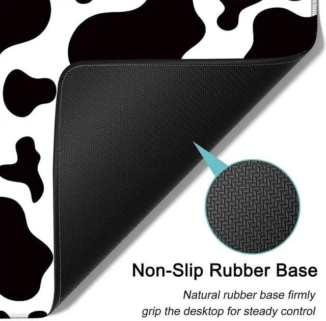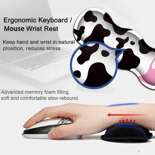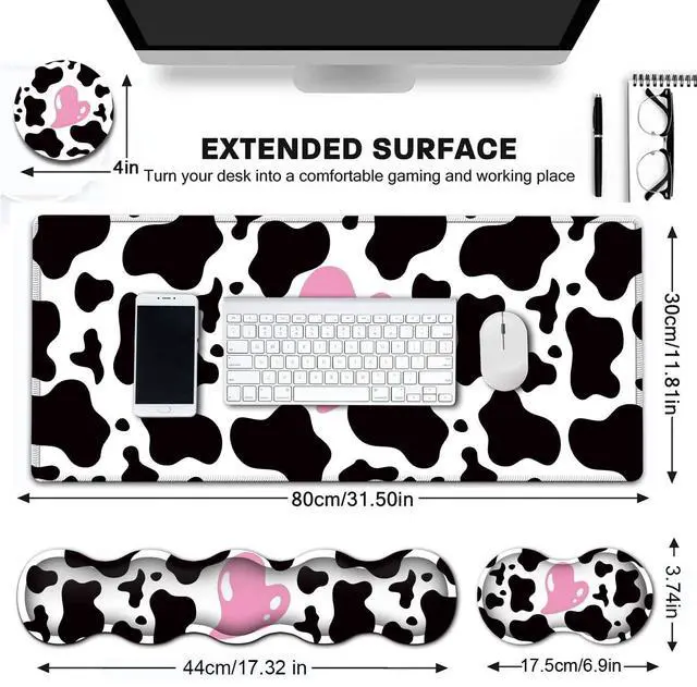 Ergonomic Memory Foam Keyboard Wrist Rest and Large Gaming Mouse Pad with Non-Slip Base, for Home Laptop Office Desk Pad,31.5x11.8 Big Desk Mat Black White Cow Skin Mouse Pad with Wrist Supprot