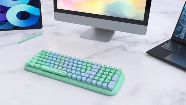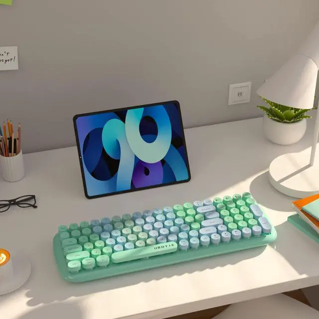 RETRO ROUND KEYCAPS: Clicky, Classical, Memories, TKL, what we design is to help your could type something at anywhere, anytime, meanwhile, we hope this cute typewriter design keyboard could bring you some good memories ^^ COMPATIBLE WITH WINDOWS & MAC OS & IOS & ANDROID: With this portable mini size bluetooth keyboards, you will find it is very convenient to type message or edict document by this portable keyboard on your cellphones or tablet pc ^^ STABLE BLUETOOTH CONNECTION TECHNOLOGYBroadcom Chip & 10m connecting rang & quickly re-connected &auto-sleep ANY REPLACEMENT&REFUND WILL BE RESPONDED IN 6HrsAny problems please let us know in time and there will be a brand new one shipped to you. energy saving. Please make sure that your device has bluetooth function or your just need a bluetooth receiver.