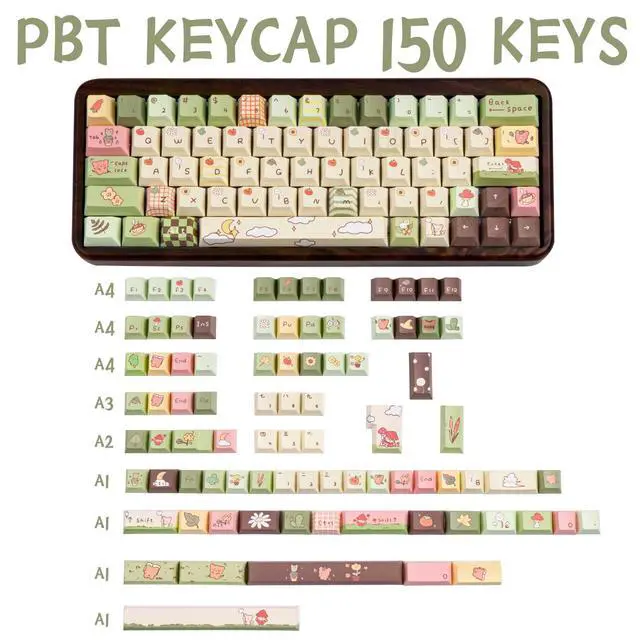 ^^ [Cherry Profile] The pbt keycaps are designed with a Cherry profile to give you a long-lasting comfortable typing experience. You won't feel fatigued when using it for a long time at work or in games. ^^ [Widely Compatible] The cute keycaps set consist of 150 keys, suitable for 61/64/68/75/84/87/96/98/104/108 mechanical and optical keyboards, and any "+" Key switches, it is a good choice for you to DIY your mechanical keyboard. ^^ [Warm Tips] Only keycaps, keyboard is not included. This keycaps set is ideal gift for esports enthusiast, white-collar worker, student, anyone who wants to decorate your keyboard.