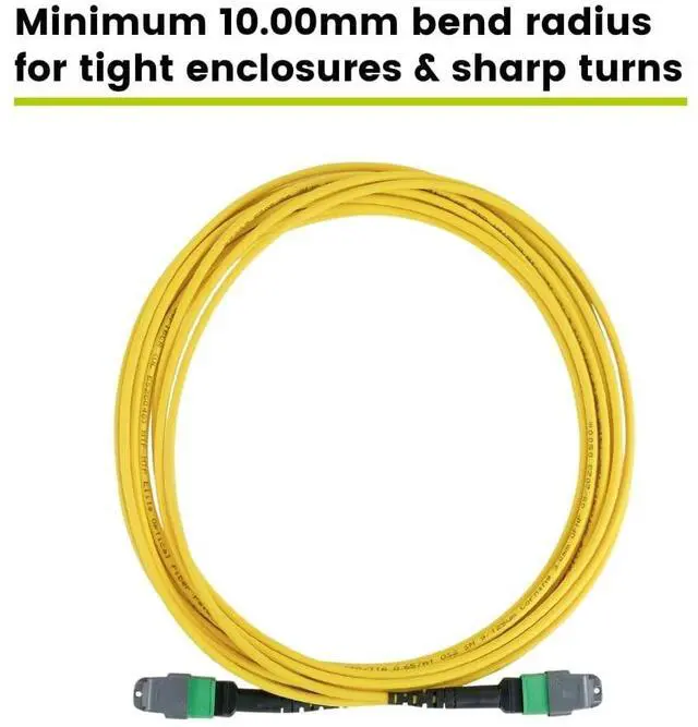Perfect fiber patch cable for QSFP+ 40G SR4/CSR4, 100G QSFP28SR4, and compatible 400G DR4 links. MTP12 supports MTP8 systems. ^^ [Durable] 10 mm minimum bend radius and 3.0 mm OD jacket fit tight routes and highdensity racks. Aramid yarn reinforced core fiber resists stress during installs. Rugged single mode fiber optic Ethernet cable for demanding environments. ^^ [Field Tested, Customer Approved] Performance tested and compliant with ANSI/TIA 568.2 -E. Certified to IEC 61300-3-35, IEC-61754-7, and TIA-604-5. UL Listed. Backed by our superior customer support.