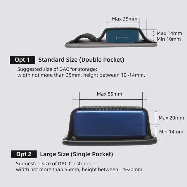 ^^ Dual-Pocket Anti-Drop Design Highly elastic fabric with double compartments prevents small DACs/earphone adapters from falling out. Fits DACs up to 1.38" x 0.55" (35x14mm). ^^ Premium Protection & Portability Scratch-resistant PU leather exterior + soft inner lining shields devices. Super lightweight (31g) and slim ( 0.45" thick) for zero bulk.