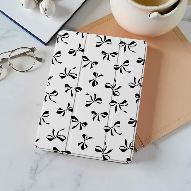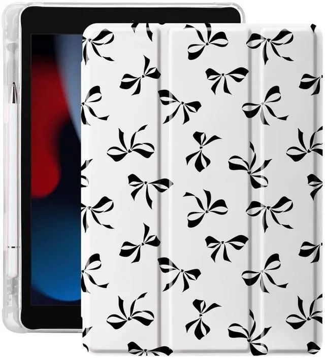 Idocolors Cute Black Bow Case for 7.9" iPad mini 4/5, Tri-Fold Tablet Case with Auto Wake/Sleep & Pencil Holder - Vibrant Protective Cover for Women Girls and Teens, (White)