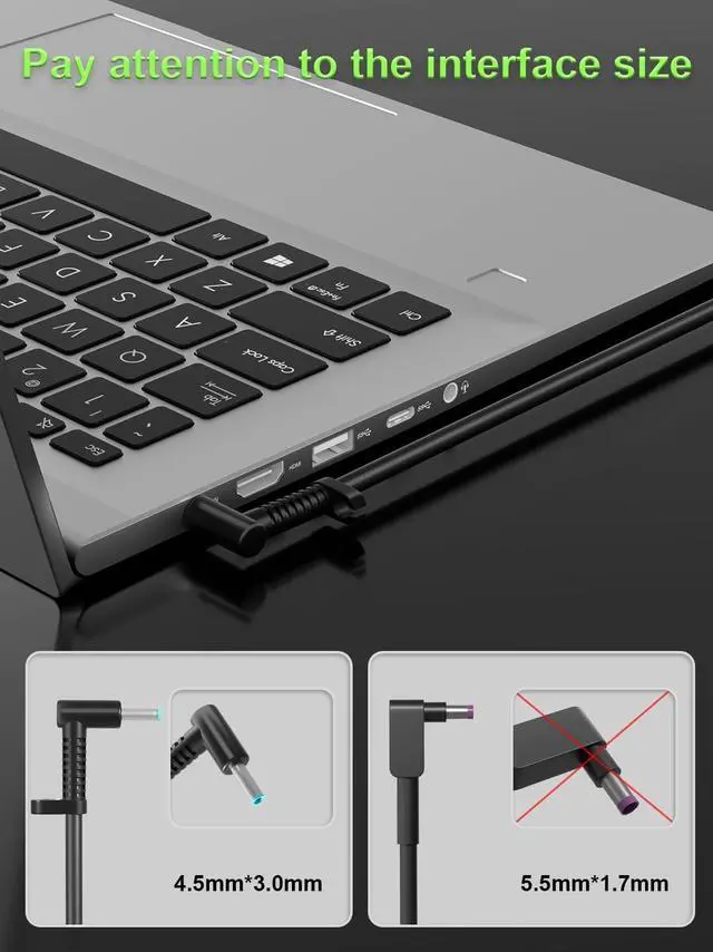 Connector Type: 4.5 * 3.0 mm Smart Blue Tip. (It is not work laptops requiring more than 150W) ^^ Fast Charging ---With a compact design, the charger is easy to carry and store. Saves more space for power strips, ideal for home, office, and travel. With increase in operating frequency, an innovative stacked design, and an upgraded circuit board structure, new technology makes our latest charger smaller without sacrificing a drop of power. Power up your laptop and give you the productivity & flexibility you need quickly