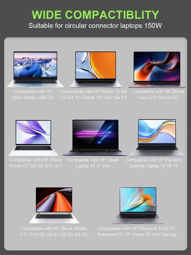 PowerPortnerLink Compatible with HP ZBook 15 G6 G5 G4 G3 Laptop Workstation, ZBook 15v G5/ 15u G3 Laptop Workstation, ZBook Studio x360 G5 Laptop Workstation, ZBook Fury G10 G9 G8 G7 Laptop Workstation, ZBook Power G7 G8 G9 G10 G11 Laptop Workstation, ZBook Studio G11 G10 G9 G8 G7 G6 G5 G4 G3 Workstation Laptop, Elitebook 1050 G1 Notebook PC ^^ PowerPortnerLink Compatible with HP Victus 15 Inch Gaming Laptop, Pavilion Gaming Laptop 15-e 15-cx 15-ec 15-bc 15-dk 15-ak 15-cb 15z-ec 15t-bc 15t-dk 15t-cx 16-a 16-ab 17-cd 17-ab Series, Omen Laptop 15 17 Inch 15-ax 15t-ax 15-ce 15t-ce 17-an 17t-an 17-w 17t-w Series Computer Replacement Charger Power Supply Adapter Cord ^^ PowerPortnerLink Compatible with HP PN; TPN-DA03 TPN-DA09 TPN-CA11 HSTNN-CA27 ADP-150XB-B A150A05AL 917649-850 917677-003 917677-001 737737-001 737757-001 776620-001 75626-003 7645509-002 L32661-001 L15534-001 L48757-001 693709-001 693707-001 ^^