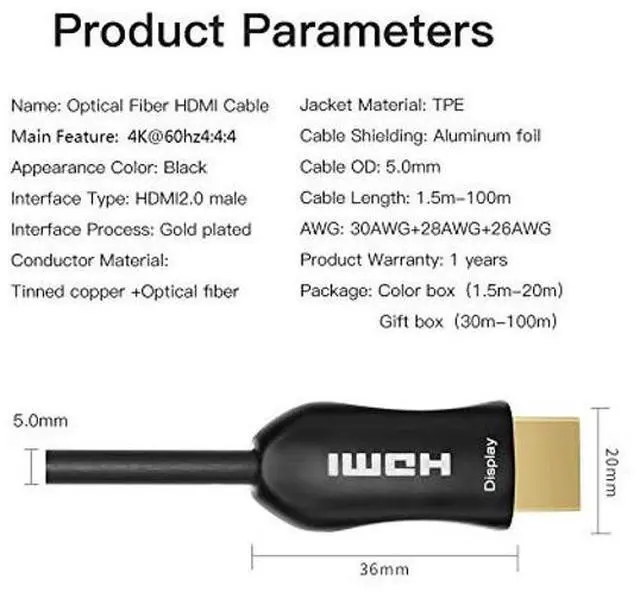 Jeirdus 150Meters Fiber Optic HDMI Cable 500FT-Thin wire with standard 2.0 HDMI Interface, Ultra slim ( 5.0 mm Diameter) and lightweight cable makes cabling easier, you can route the flexible cord around the tight space as you want. Provide the best A/V quality with 18.2 Gbps bandwidth, it ideal solution when copper HDMI can not transfer 4K@60Hz for long distance. HDMI to HDMI cable delivers 18Gbps bandwidth to handle 4K@60Hz 4:4: 4/